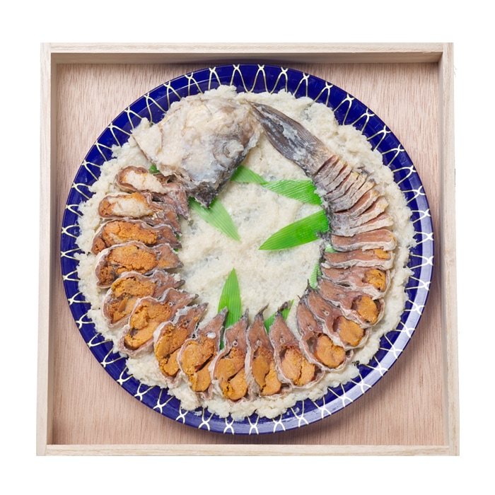琵琶湖特産の天然ニゴロブナのみを用い、 良質の近江米に一年以上漬け込む、伝統の製法にて仕上げました。 風味絶佳、滋養豊富・・・その酸味ある独特の湖国の風味をご賞味ください。