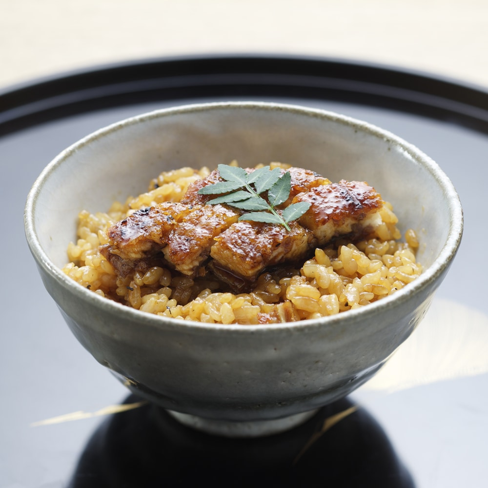厳選した国産鰻の蒲焼きを近江米に贅沢にまぶしたご飯と、蒲焼きの切身をのせた錦糸卵入りのうなぎまぶしご飯です。