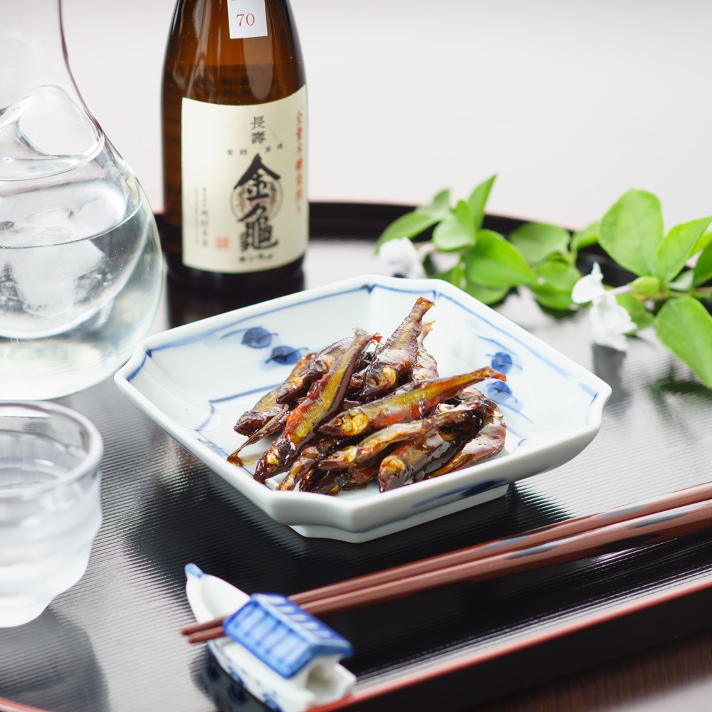 - 鮎(琵琶湖産)、醤油、砂糖、水飴、清酒、味醂、寒天/調味料(アミノ酸等)、(一部に小麦・大豆を含む)