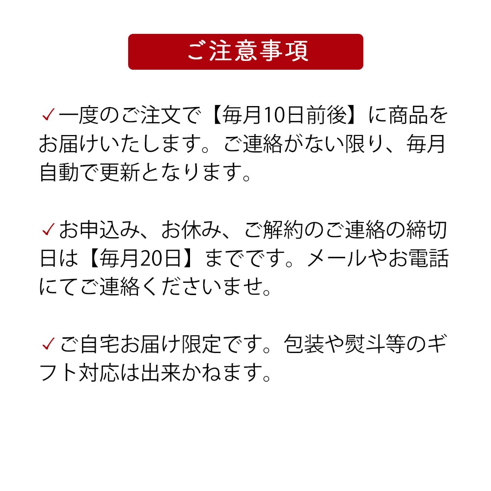 ※本頒布会はお休みや中止のご連絡をいただかない限り、毎月自動更新となります。