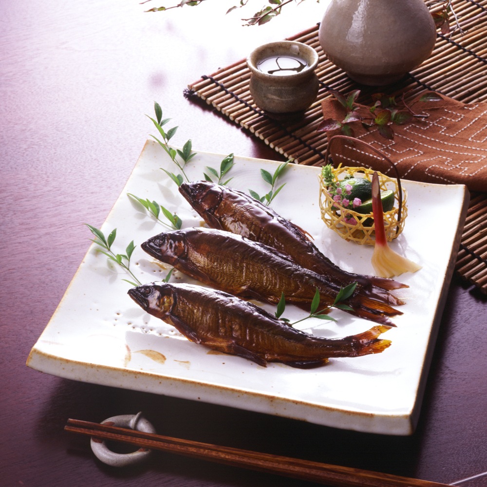 ふっくら、やわらか。 自然の麗姿もそのままに、日持ちよりも美味しさに心を込めてとろ火でじっくりと炊きあげております。 お箸で簡単にほぐれるほど柔らかく、頭から尾まで余すことなく召し上がっていただけます。 粋で贅沢な鮎の名品です。