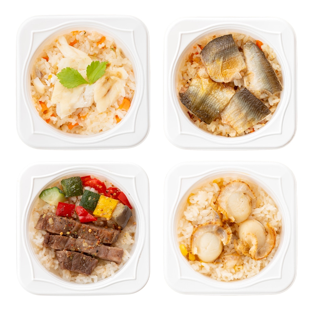 焼きあゆご飯110g・帆立バターご飯115g・焼き鯛ご飯115g・近江牛ステーキご飯125g 各1食