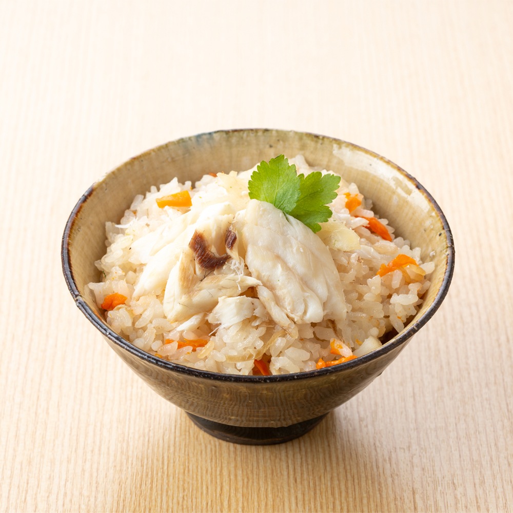 「香魚」とも称される国産鮎を塩焼きにし、ひとくちサイズにほぐした鮎の切身と、干し鮎から丁寧にとった出汁で炊き上げた香り豊かなご飯。すっきりと上品な香りと、鮎ならではの奥深い旨みが口に広がる一膳です。