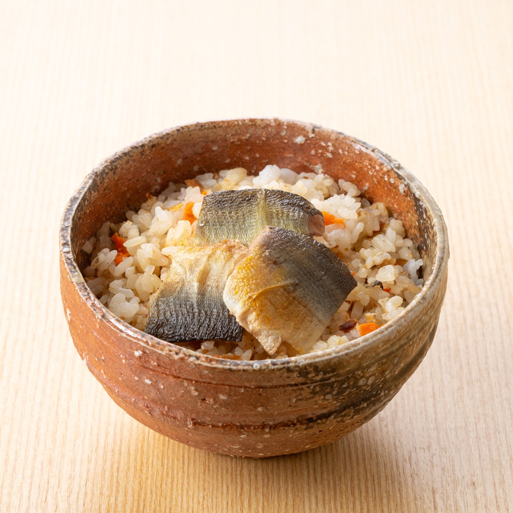 「香魚」とも称される国産鮎を塩焼きにし、ひとくちサイズにほぐした鮎の切身と、干し鮎から丁寧にとった出汁で炊き上げた香り豊かなご飯。すっきりと上品な香りと、鮎ならではの奥深い旨みが口に広がる一膳です。