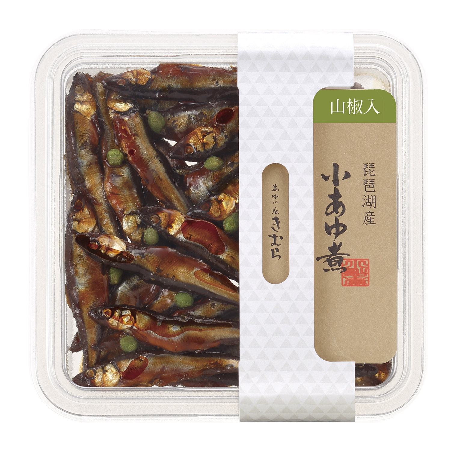 - 赤こんにゃく110g×1、山椒入小あゆ煮80g×1、あゆの姿煮切身85g×1、本もろこ70g×1
